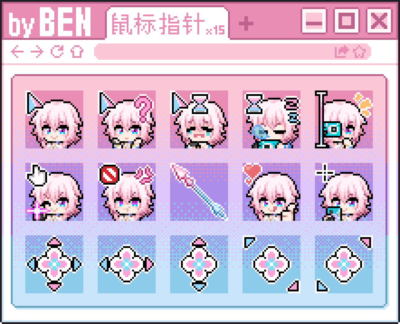 2023年11月5日三月七鼠标指针 企划方:祎果 画师:乱涂乱画BEN 制作时间:2023年11月10日 下载链接:点击下载 ☄ 展示 ☄ 内容 一个压缩包,压缩包内包含以下内容 15个32×32动态指针。 附带一键安装文件,动态表情**个。 可做头像。 mac用户请自行搜索转换使用方法,b站上有。 ☄ 角色介绍一度沉睡于恒冰,对过去一无所知的少女。为了寻找身世的真相,选择与星穹列车同行。目前为自己准备了约六十七种「身世故事」。点击前往三月七网站 ☄ 版权声明 © 2023 乱涂乱画BEN 版权所有。 禁止商用 未经允许禁止二次上传源文件(可转载本页面)